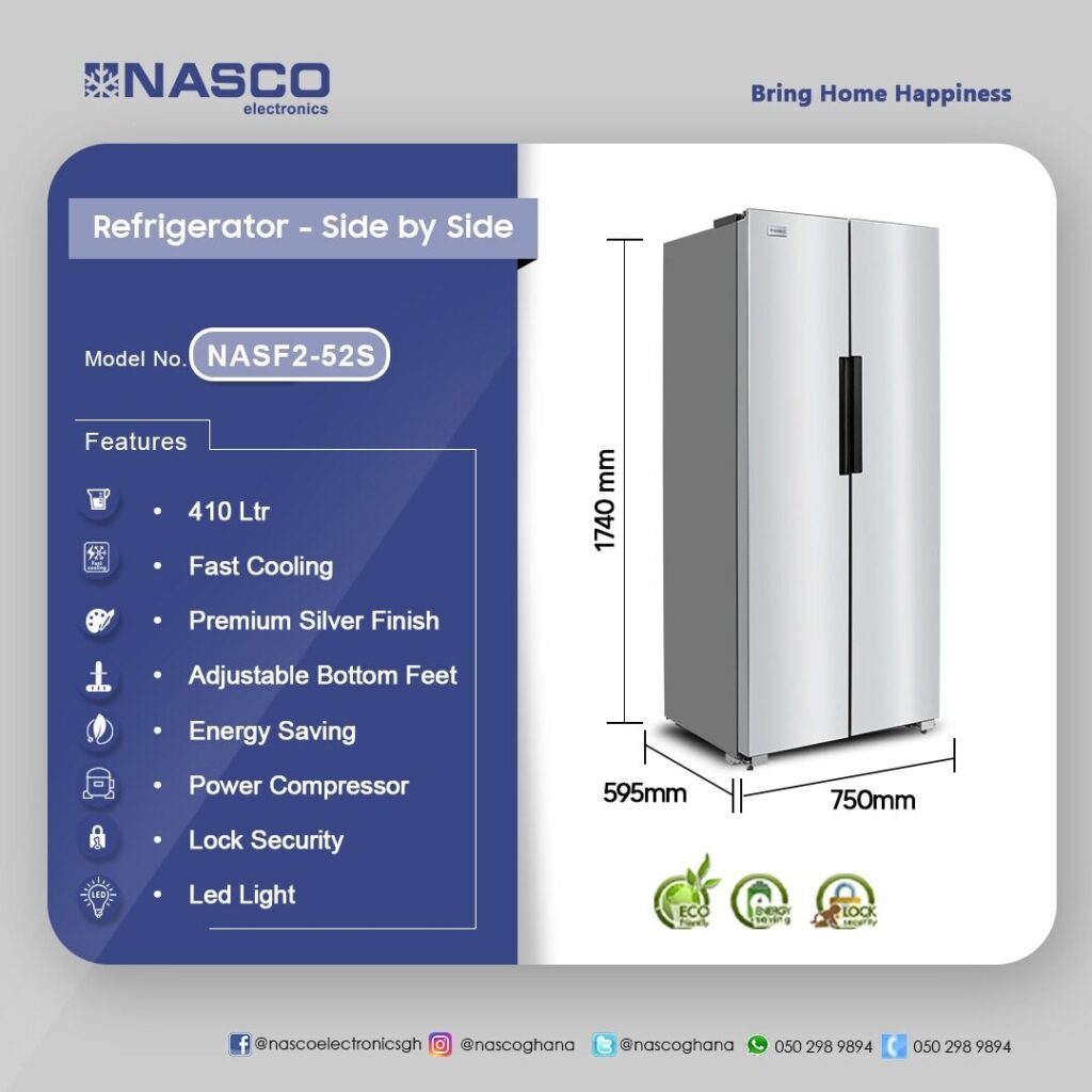 Nasco 410Ltrs Side-By-Side Refrigerator